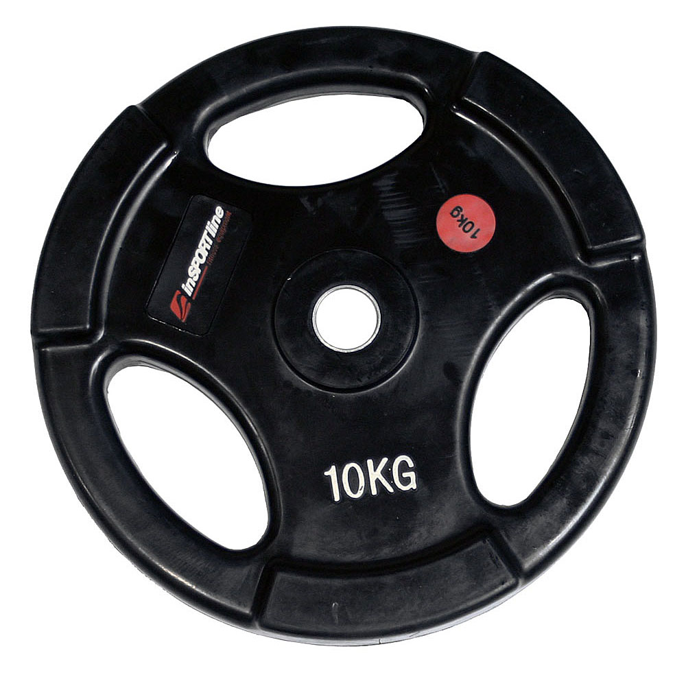 Univerzális gumírozott ergo acél súlytárcsa inSPORTline 10 kg, 30mm átmérőjű edzőrudakhoz, gumírozott. több