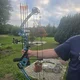 Erős íj teljes felszereléssel, beleértve a nyilakat, célokat, irányzékokat, alapot és stabilizátort. A húzóerő erőssége és hossza állítható. több