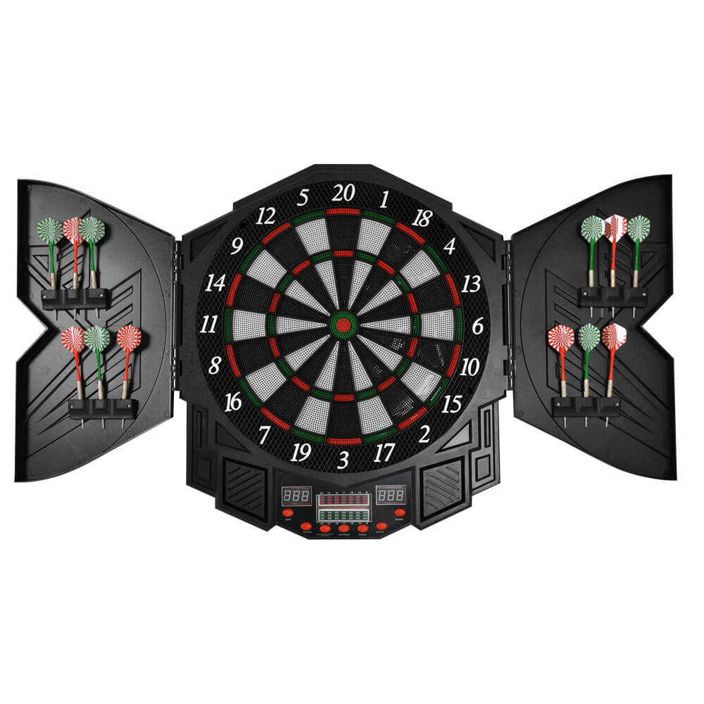 Kiváló kikapcsolódást nyújt az egész családnak vagy a baráti társaságnak a WORKER WJ300 elektromos darts tábla. Modern, technikailag nagyon jól kidolgozott a WORKER WJ300 elektromos darts tábla. 1-8 játékos számra ajánlott a darts. Kemény műanyagból készült a WORKER WJ300 elektromos darts tábla, mely ellenáll a sérüléseknek. A nyilak tárolására külön kis résszel is ellátott. A WORKER WJ300 elektromos darts tábla két LCD kijelzővel felszerelt, amelyek egyszerűen kezelhetők. 27 játékmóddal és 216 játékvariánssal rendelkezik a WORKER WJ300 elektromos darts tábla. Automatikusan kikapcsol a darts. A WORKER WJ300 elektromos darts tábla használható otthon és a kertben is, de víz nem érheti.