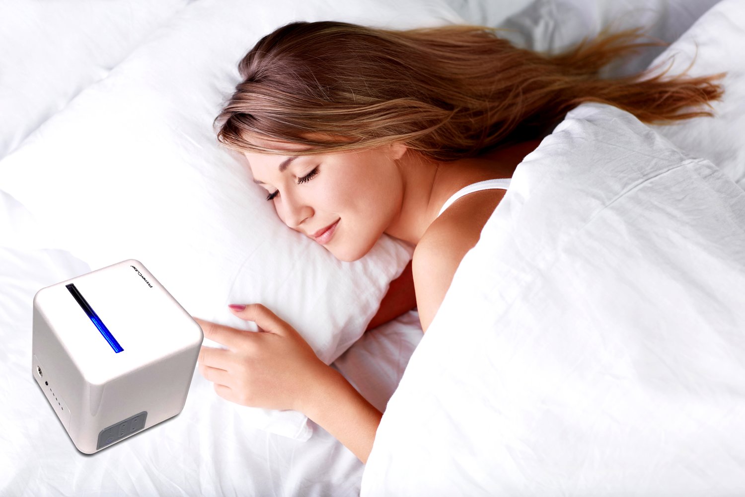Alváskor: Helyezd a Primercube-ot az ágy mellé kb. 30-40 cm távolságra, esetlegesen az ágy alá felfele irányuló sugárzási irányba