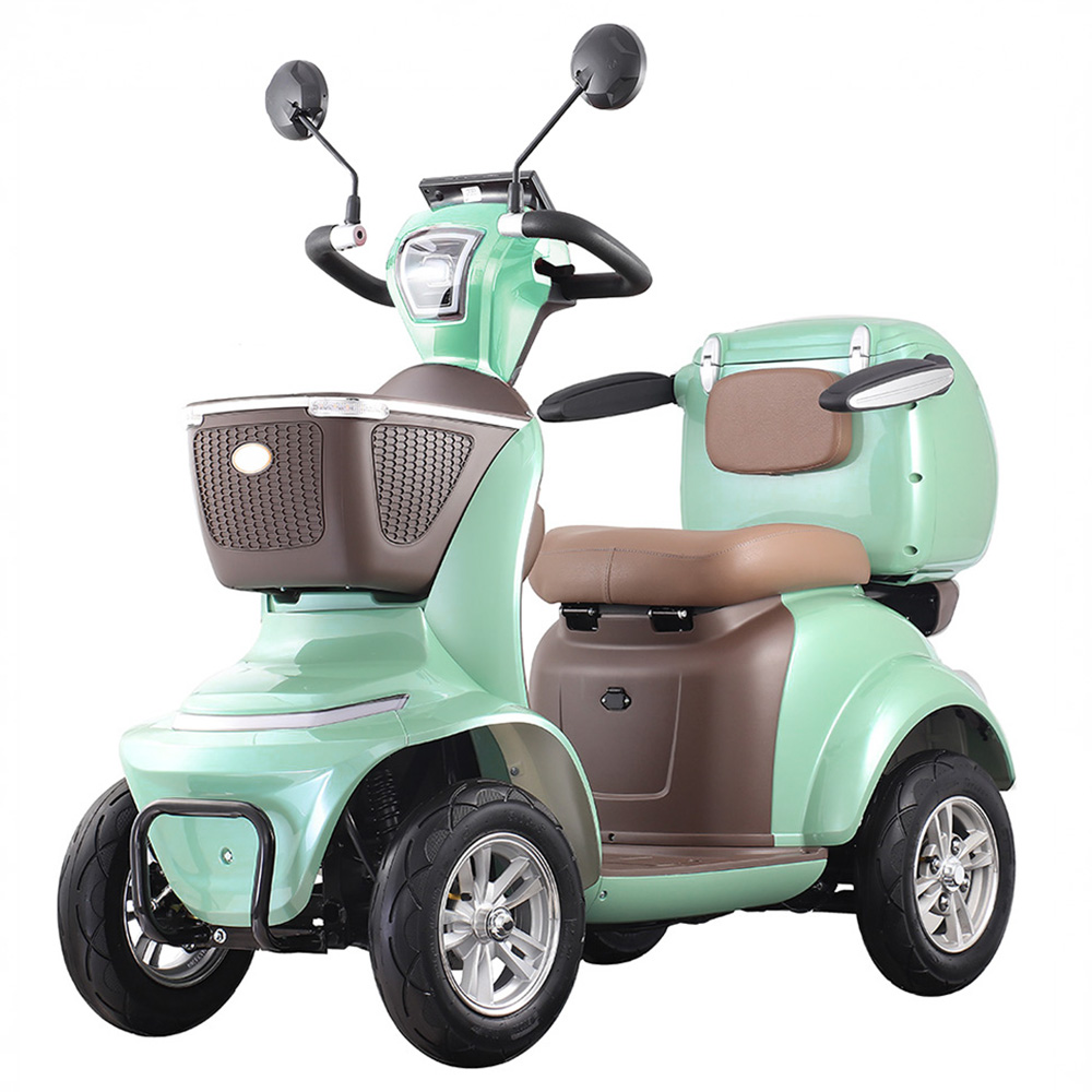 Modern, futurisztikus megjelenésű elektromos robogó, aminek használata nem igényel jogosítványt, csendes és biztonságos elektromágneses fékrendszerrel, stabil négykerekű kialakítással, nagy digitális kijelzővel és rengeteg tárolóhellyel. több