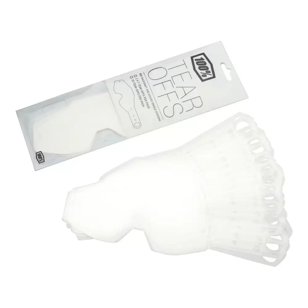 A 100% Strata/Accuri/Racecraft motoros szemüveghez, 20 darab letépő fólia könnyen, megállás nélkül letéphető. Segítségükkel a kilátást akadályozó, nem kívánt szennyeződésréteg (például terepmotorozás után felhalmozódott sár) azonnal eltávolítható. A fólia könnyen rögzíthető a három kis oldalsó csapra (tüskére), amelyek szilárdan a szemüveg plexijén helyezkednek el.