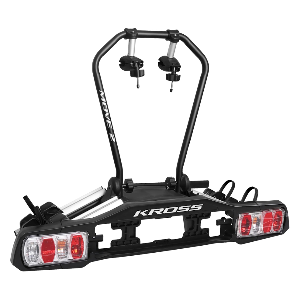A Kross MOVE 2 Vonóhorogra szerelhető kerékpárszállító egy kompakt és rendkívül könnyű eszköz, amelyet két kerékpár – legyen szó országúti vagy hegyi bicikliről – kifejezetten biztonságos szállítására terveztek. Az alumíniumszerkezet és a megerősített műanyag elemek kombinációjának köszönhetően a tartó kis súlyával és rendkívül egyszerű kezelhetőségével tűnik ki a mezőnyből. A felszerelés folyamata annyira gördülékeny, hogy akár egy kézzel is könnyedén elvégezhető.