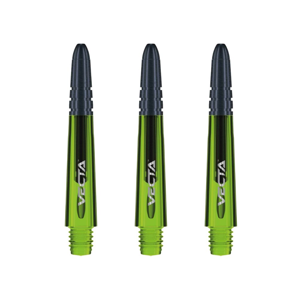 A készlet 34 milliméter hosszúságú Winmau Vecta Short cserefogantyúkat tartalmaz. Az alumínium és a polikarbonát egyedülálló kombinációjának köszönhetően alacsony sűrűségűek, és számos színben megvásárolhatók.