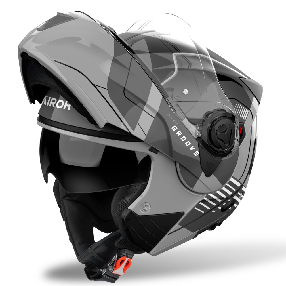 Specktre: "Engedély a lenyűgözésre". Ez nemmás, mint az AIROH SPECKTRE Groove P/J szürke fényes felnyitható bukósisak.