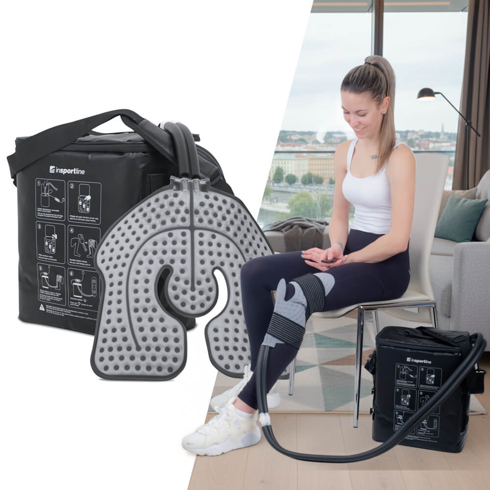 Az inSPORTline Coldero hűtőkészülék hideg borogatással rendkívül gyorsan és egyenletesen hűt. Csak tegyél jeget vagy jégakkut a hordozható tartályba, töltsd fel vízzel, és kapcsold be a szivattyút. A gép elkezdi a hideg vizet közvetlenül a hűtőpárnába keringetni, amelyet bárhol alkalmazhatsz: térden, vállon, háton vagy bokán. A rögzítésről rugalmas pántok gondoskodnak, amelyekből háromféle hosszúság (40, 90 és 150 cm) áll rendelkezésre a tökéletes illeszkedéshez.