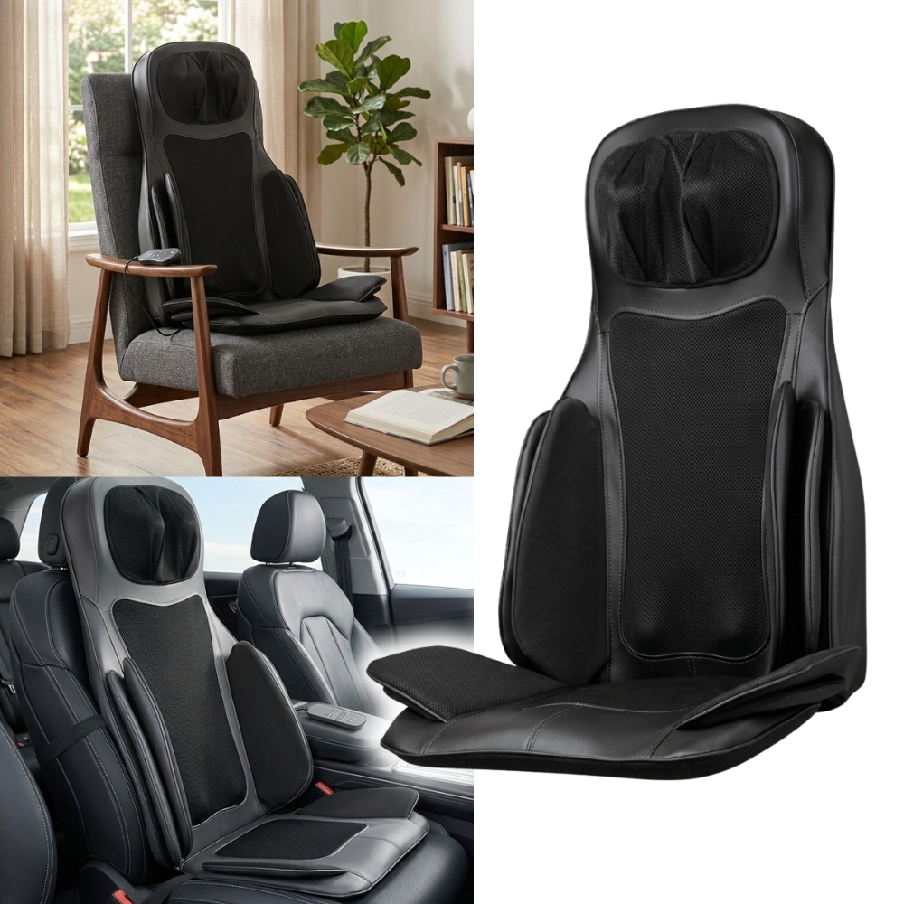 Hát-, nyak- és ülésmasszázs fűtéssel és légkompressziós masszázzsal. A készülék 3 intenzitási szintet, 10 programot, valamint hálózati és autós töltőt kínál az otthoni vagy mozgásban lévő relaxáláshoz. több