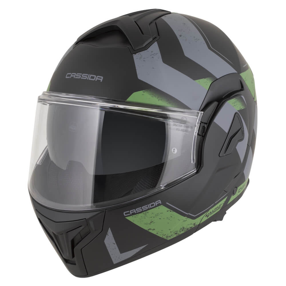 A szabadalmaztatott kinematikájú Cassida MultiFlip Korp P/J felhajtható sisak a maximális védelem érdekében polikarbonát héjat és EPS polisztirol belső magot kombinál.