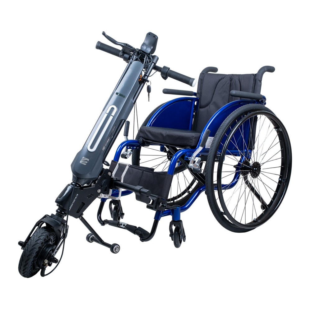 Az Oppatia elektromos hajtás leveszi a válladról a folyamatos hajtás fáradalmait, és akár 25 km-es hatótávolságot biztosít számodra. Három sebességmód (6 / 15 / 20 km/h) és hátramenet közül választhatsz az intuitív LED-kijelző segítségével. A „click and go” rendszernek köszönhetően a motor szerszámok nélkül, pillanatok alatt fel- és leszerelhető a kerekesszékre.
