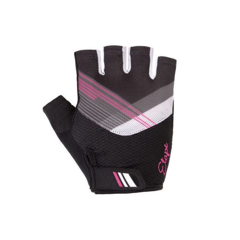 Női kerékpáros kesztyű Etape Liana, TakeOff hurkok, speciális GelPro zselés tenyérbélés, légáteresztő rugalmas anyag, tépőzáras rögzítés - rózsaszín/fekete