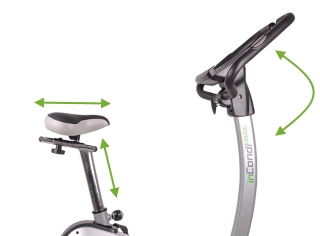 Az egyszerű vízszintes és függőleges beállításnak és a kényelmes nyeregnek köszönhetően az edzőkeréken való ülés nagyon kellemes és kényelmes. Az állítható dőlésszögű és puha felületű kormány extra hosszú és tágas fogantyúkkal rendelkezik, így könnyen megtalálhatja a legkényelmesebb pozíciót.