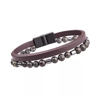 Stílusos bőrkarkötő természetes ásványokkal, mágneses kapoccsal, W-TEC …