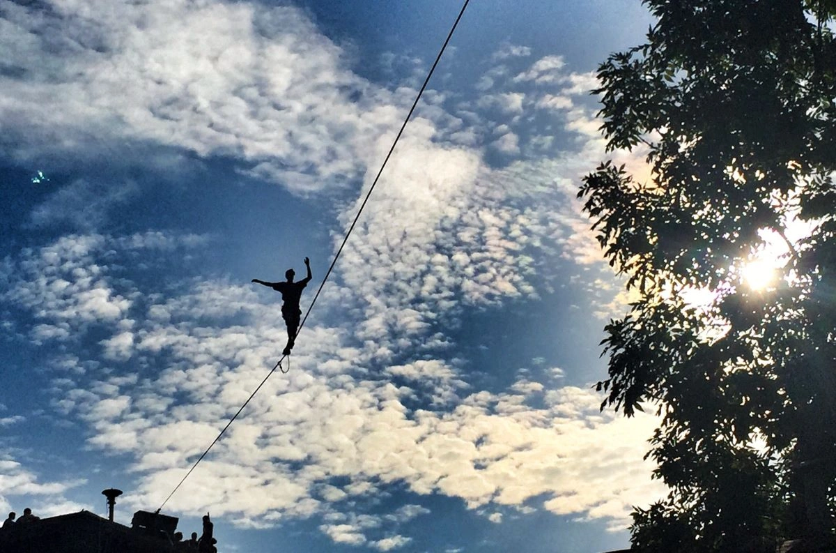 A slackline olyan, mint egy élő közvetítés a jelen pillanatról. A koncentrációd felerősödik, a légzésed elmélyül, minden a „most”-ra fókuszál. Egy olyan mentális állapotba kerülsz, amit még egy szamuráj is megirigyelne. Felbukkan egy gondolat? A slackline kíméletlen – amint kizökkensz, visszaránt a földre.