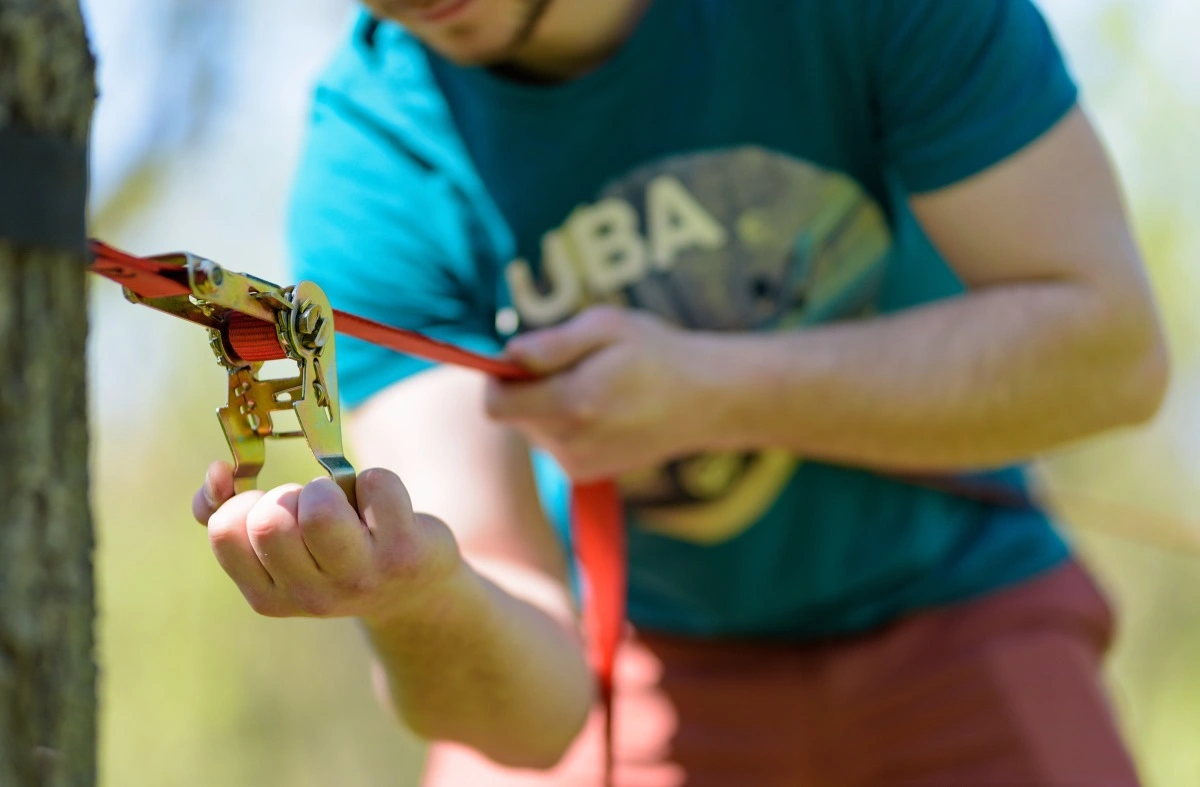 Egy saját slackline-pálya felállítása csupán néhány percet vesz igénybe, és nem is kell hozzá semmilyen bonyolult felszerelés. Elég egy heveder, egy racsni a megfeszítéshez (ezek többnyire szettben kaphatók) és két stabil rögzítési pont – például két fa.